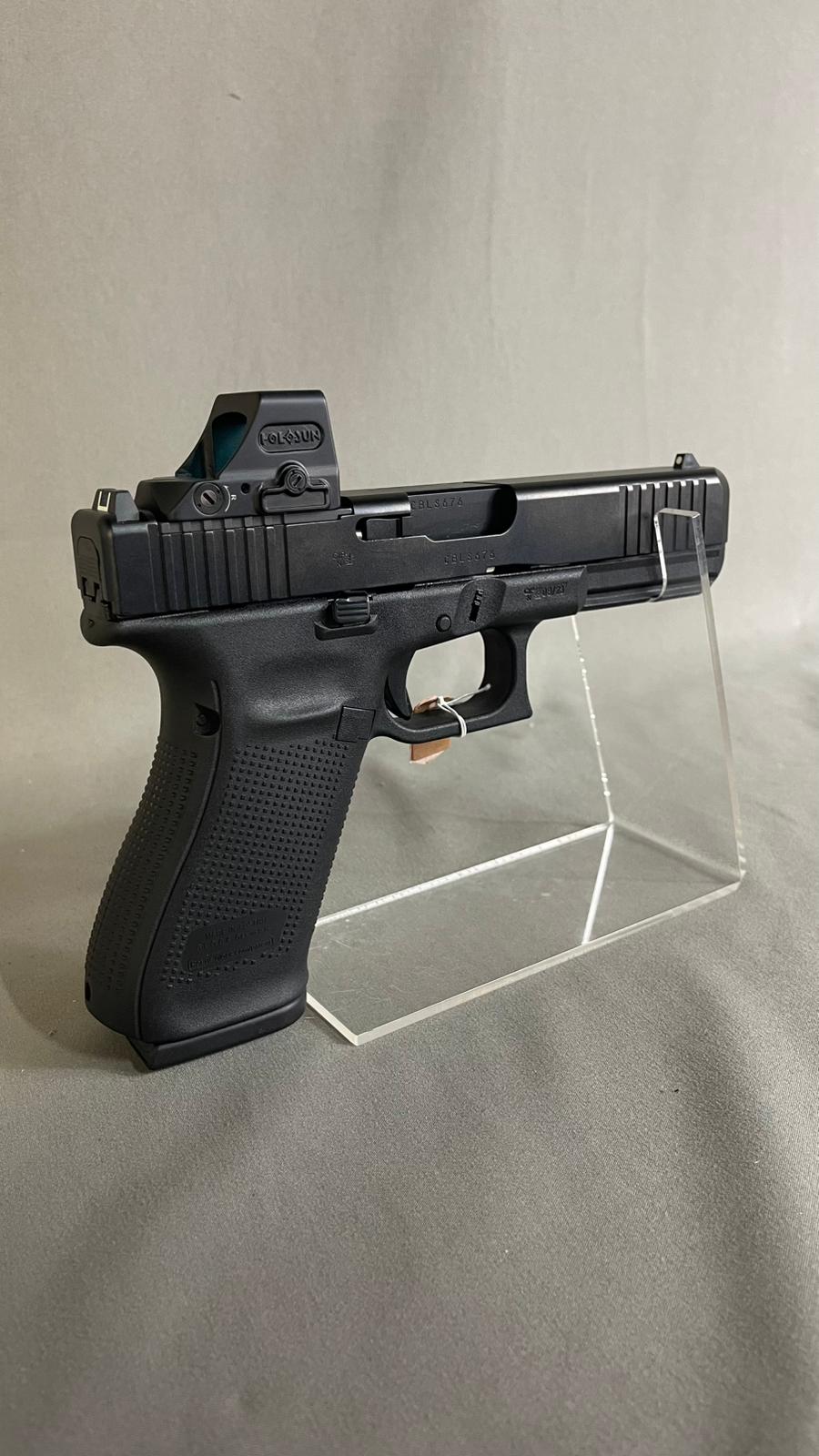 Le G21 Gen5 MOS est la version « full-size » .45 Auto dans la génération 5 de Glock : carcasse polymère légère, glissière acier traitée, absence de rainures digitales sur la poignée (no finger grooves) pour une tenue plus universelle, et commandes ambidextres améliorées. Le système MOS permet de recevoir en standard plusieurs plaques d’adaptation pour installer facilement la plupart des micro-viseurs reflex du marché (prévoir plaque spécifique / cover selon optique).