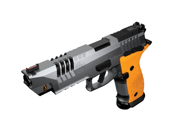 Les plaquettes de poignée ergonomiques, imprimées en 3D dans un polymère PA12, assurent une prise en main ferme et confortable, favorisant la précision et la maîtrise du tir. Le système Optic Ready (OR), associé à une visée LPA sportive et à une fibre optique avant, permet une acquisition rapide et intuitive de la cible.