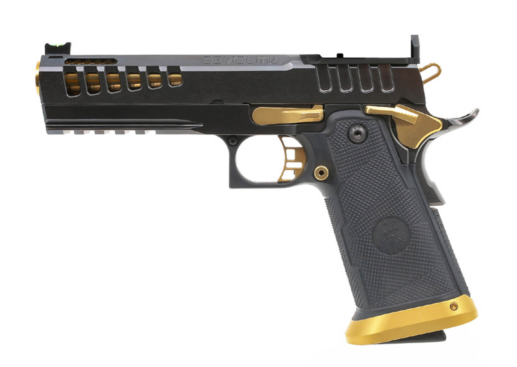 La plateforme Demolicia Core 2011 allie la capacité et la cadence d’une architecture 2011 à une finition orientée performance. Sa détente profil « match », sa poignée ergonomique et son magwell optimisé facilitent les enchaînements rapides. La version pack inclut le SRO 927, un micro-viseur à large fenêtre conçu pour favoriser les transitions et réduire le temps d’acquisition de la cible.